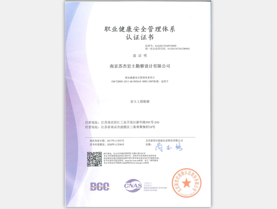 職業(yè)健康安全管理體系認證證書